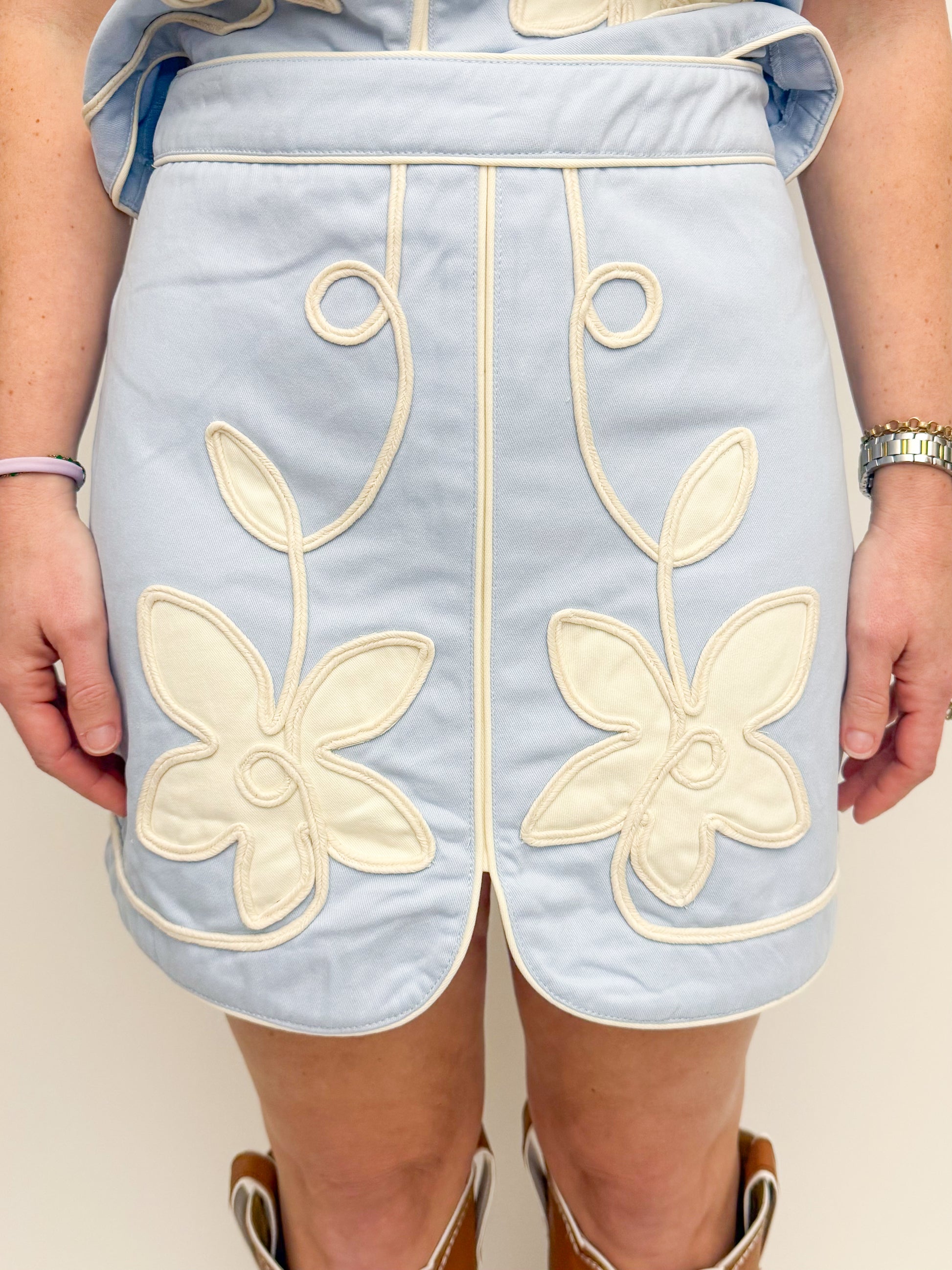 Features: floral embroidered details, side zip closure, pair with the Western Wildflower Denim Top for a matching set to your next rodeo, concert or girls trip!
