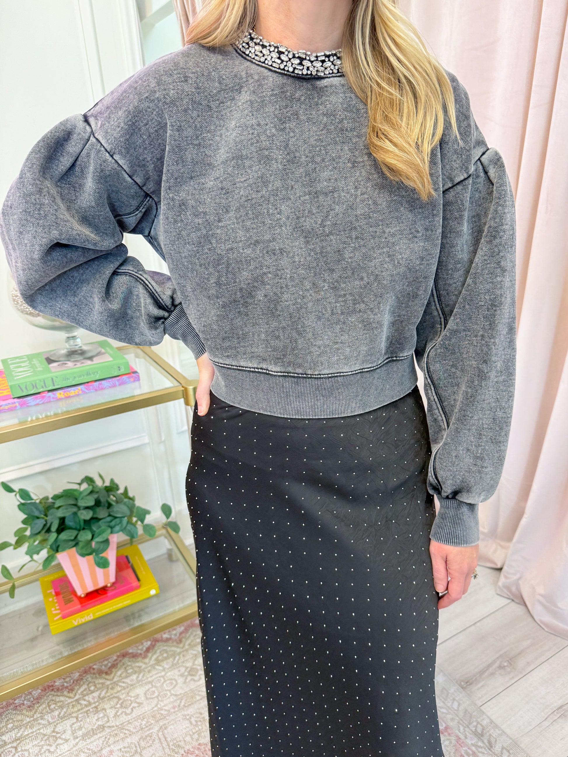 Cozy meets chic. This embellished crewneck adds just the right amount of sparkle to your everyday layers.