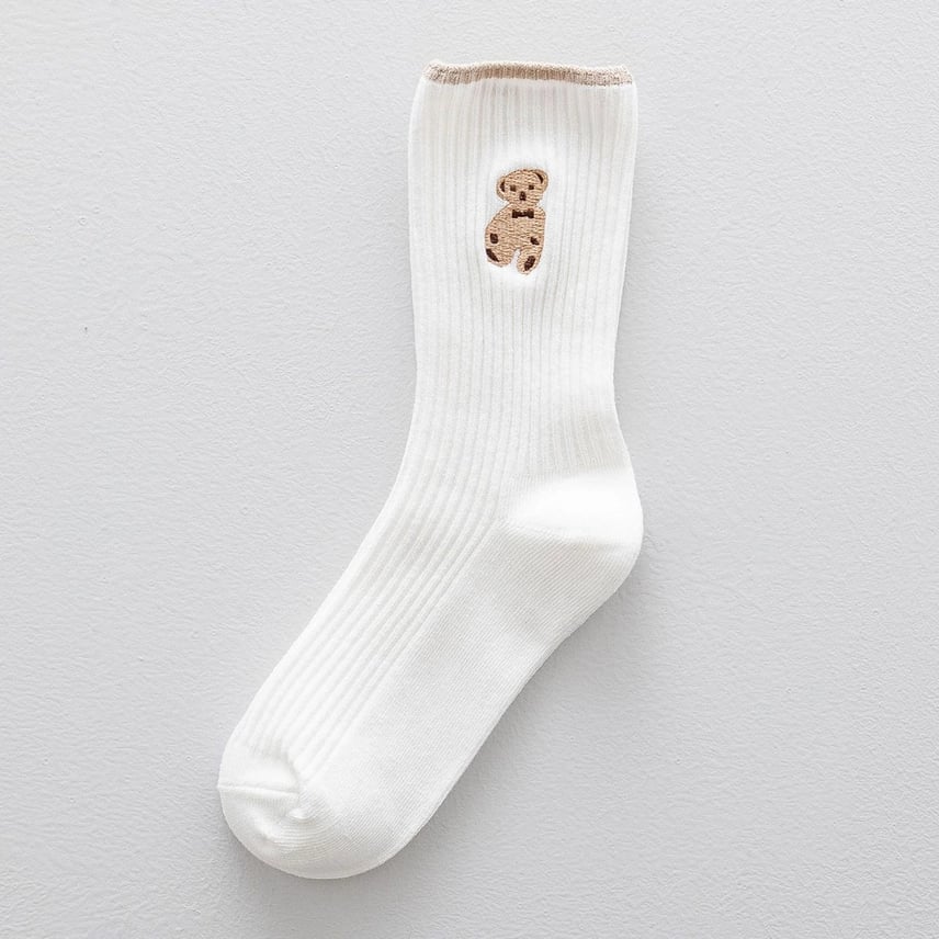 Teddy Bear Embroidered Crew Socks