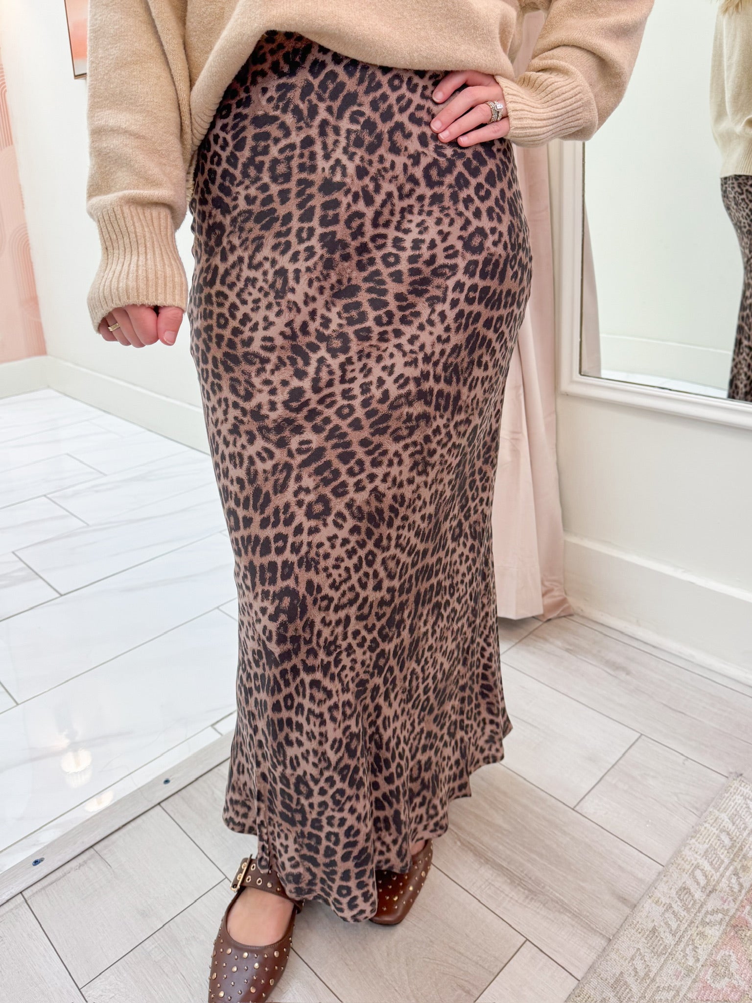 Designed in soft stretch satin, this high-rise maxi skirt brings subtle shine and an ultra-flattering bias cut. It hugs in all the right places, making it a go-to for easy elevated dressing.