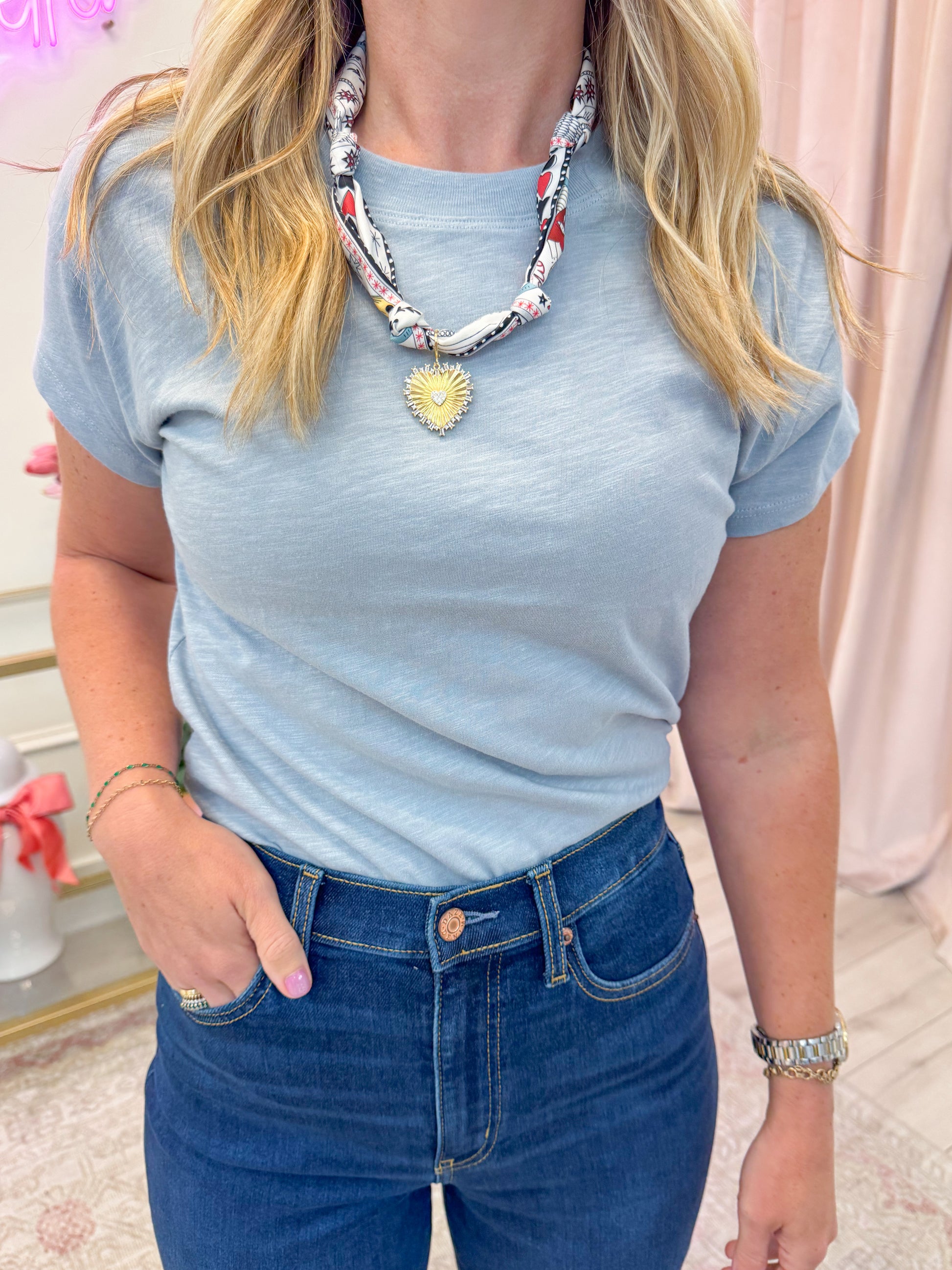 Features: Who said a tee can't be stylish! The perfect style that isn't too fitted but also isn't oversized! Pair it with shorts, a ball cap, and sneakers for a casual look or if you can dress it up a bit with the right jewelry, jeans and heels!